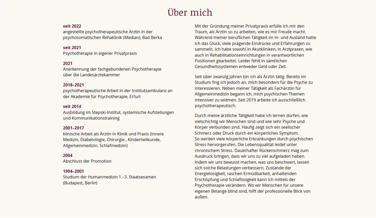 Die Website entstand für die psychotherapeutische Praxis von Kügelgen, die zuvor keine eigene Online-Präsenz hatte. Ziel war eine ansprechende und leicht pflegbare Plattform, auf der Patientinnen und Patienten Informationen zur Praxis, den Leistungen und Ansprechpartnern finden. Das Design orientierte sich an der bestehenden Website schlafmedizin-thueringen.de, um einen klaren, professionellen Stil zu gewährleisten. Die Website wurde mit dem benutzerfreundlichen Drag-and-Drop-Editor von Wix erstellt, der es der Kundin ermöglicht, Inhalte wie Texte und Bilder eigenständig zu aktualisieren und anzupassen.